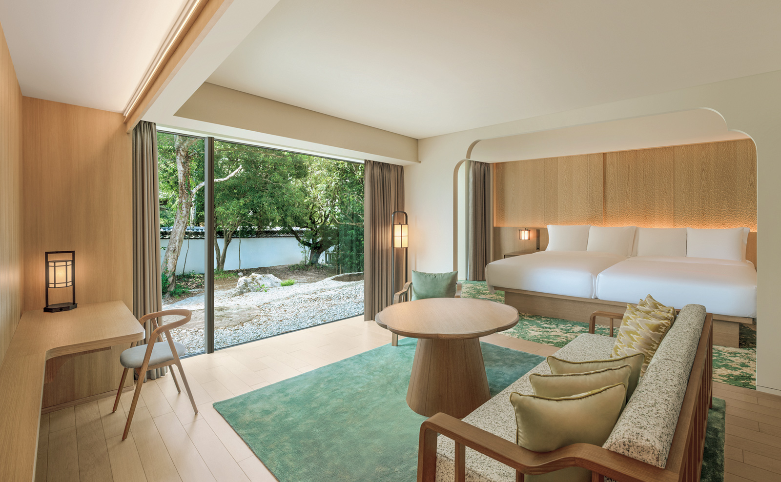 世界遺産に囲まれた景勝地「奈良公園」に居を構えるホテルでは「伝統と現代の結び」をコンセプトに贅を尽くした空間で一期一会のもてなしを享受。大正時代に建てられた奈良県知事公舎をリノベーションしたメイン棟には奈良のテロワールを堪能するレストラン「翠葉」、蔵を再生した鮨&バー「正倉」も。充実したアクティビティも滞在の思い出に。