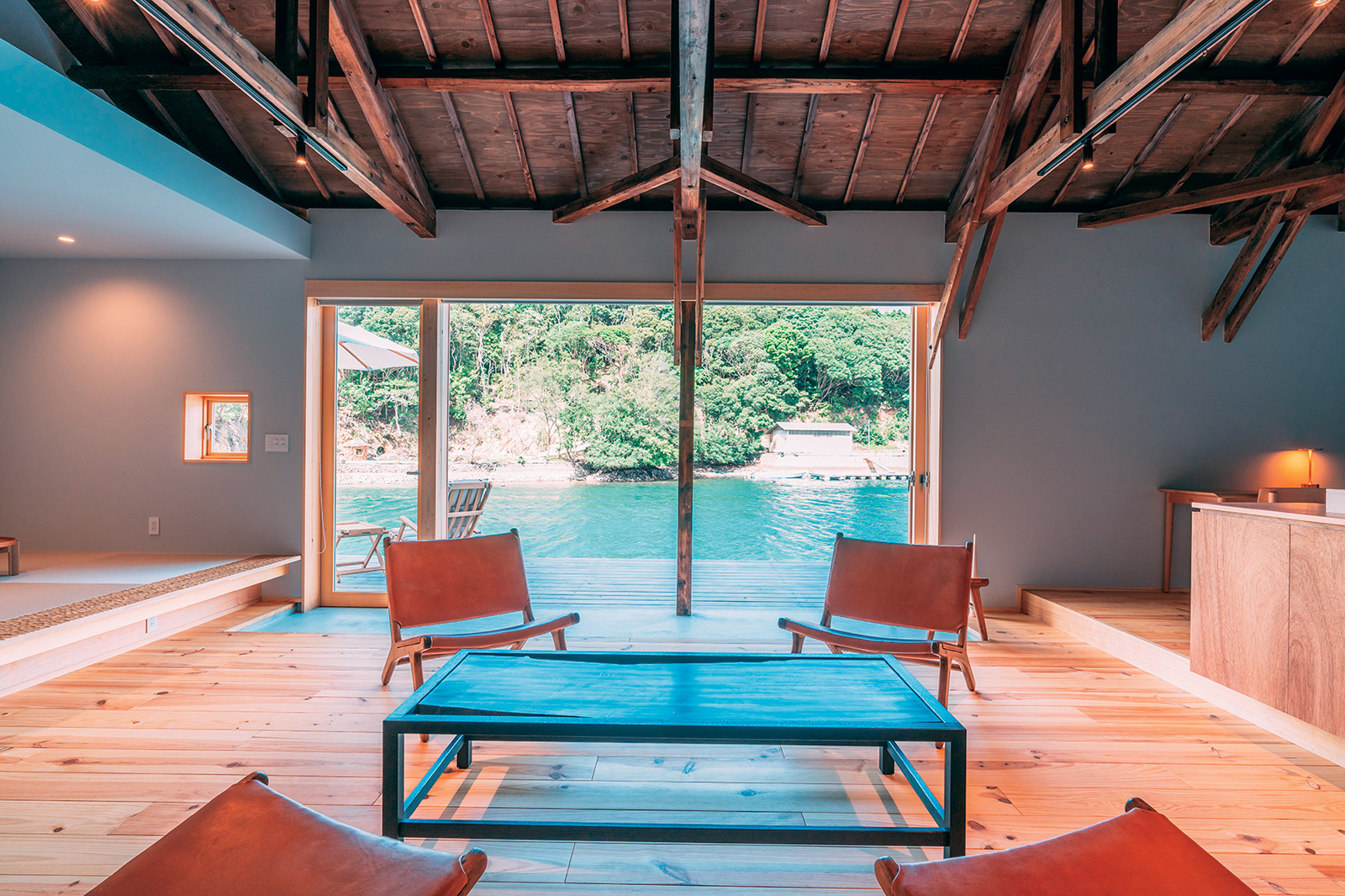 老舗真珠商・覚田真珠が英虞湾の里海の再生や伝統文化の継承を目指し、2023年に開業した体験型ホテル。薪割り体験で割った薪は焚火に用い、炭となった薪はサウナや調理に使用するなど、無駄のない循環システムが構築されている。真珠養殖工場だった建物を生かしたプライベートヴィラは全4棟。入り江に浮かぶような浮遊感と、充実したアクティビティを楽しめる。