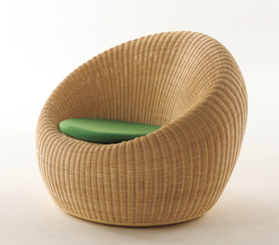 1960年開業の「ホテルニュージャパン」のラウンジ用に剣持勇がデザインしたチェア。藤のおおらかな曲線と風合い、体を包み込む弾力が心地よい。1964年、日本家具で初めてニューヨーク近代美術館の永久収蔵品に選定された名作椅子。